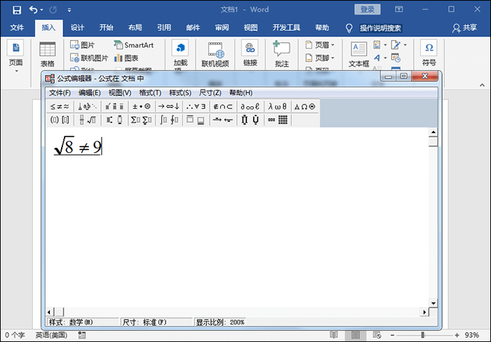 3、接着页面中就出现“公式编辑器”了,然后我们在这个界面中利用菜单栏中的工具和选项编辑公式就可以了。
