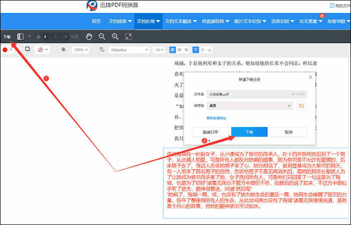 完成PDF文件编辑后,如何保存PDF文件呢?点击左上角的下载选项,便可将文件下载到电脑中进行保存,比较方便。