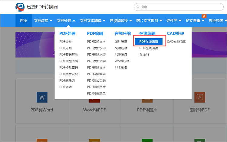 在网站中一样是可以打开pdf文件的,并且也是可以实现大家对文件编辑的需求。在浏览器中找到我们需要的网站,进入网页选择功能即可。