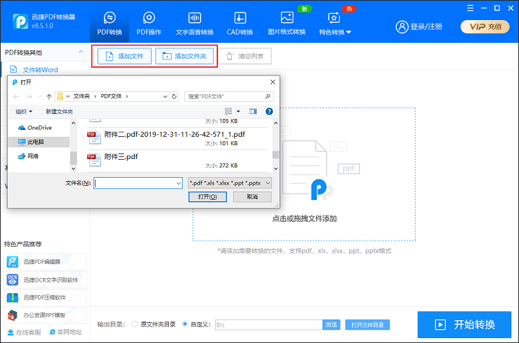 当我们进入到文件转word的页面后,接下来需要添加一下文件,在页面中点击“添加文件”即可完成。