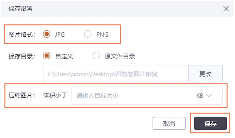 如果选择以“JPG”格式进行保存,则软件还支持批量压缩图片的体积大小。