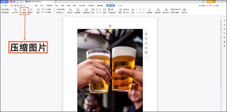 步骤一:想在电脑上压缩图片大小,还可以借助WPS进行操作。首先打开文件,将图片添加到文件内,然后用鼠标点击图片,系统会跳转到【图片工具】页面,点击页面左上角的【压缩图片】图标,这时页面会弹出一个窗口。