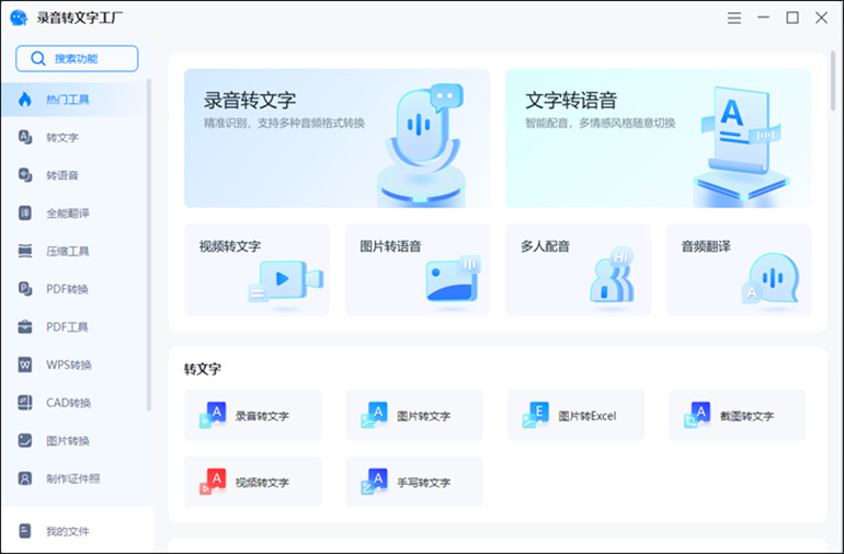 录音转文字工厂是一款多功能的办公软件,主打录音转文字功能,可以在线将录音文件转换为可编辑的文本文件。除此以外,它还含有pdf转换、在线压缩、图片转换以及全能翻译等一系列实用功能供我们使用,其中它的“ppt转pdf”工具,支持一次性添加单个或多个ppt文件进行转换,并且转换速度快,能有效的提高我们的工作效率。