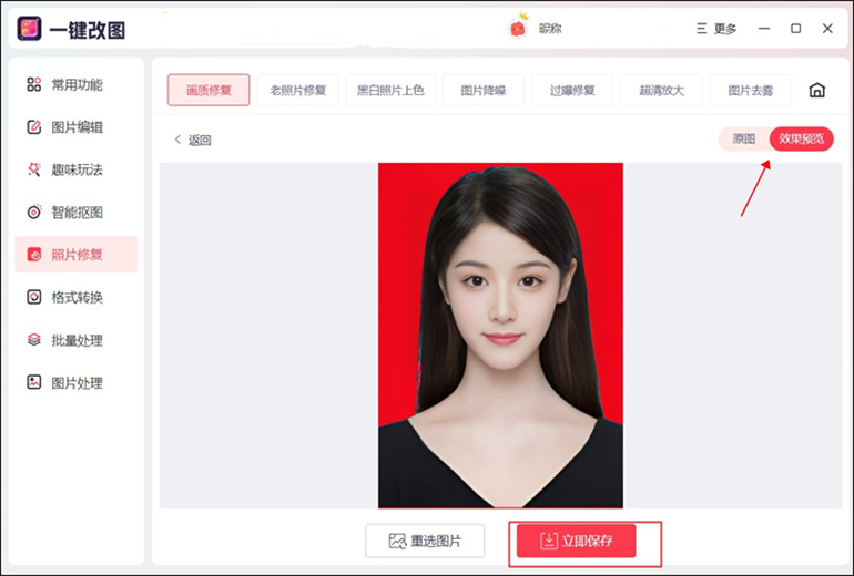 一键改图软件是一款功能强大的图片处理软件,其中包含了图片画质修复功能。通过该软件,你可以轻松地对照片进行修复和优化。