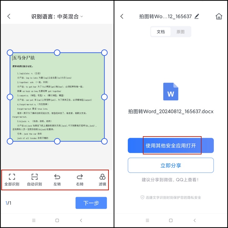 识别完成后,点击导出按钮后,按照提示操作即可将识别结果保存为Word文档,方便你在电脑或其他设备上进行进一步的编辑和整理。