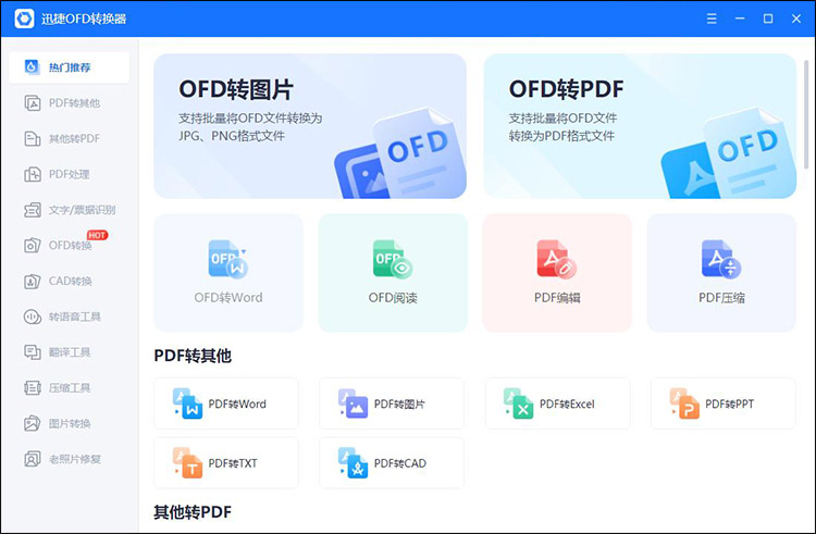 迅捷OFD转换器是一款专业的OFD转换软件,它不仅涵盖了OFD转换功能,还提供了PDF处理功能,如PDF分割、PDF合并、PDF压缩、PDF编辑功能。