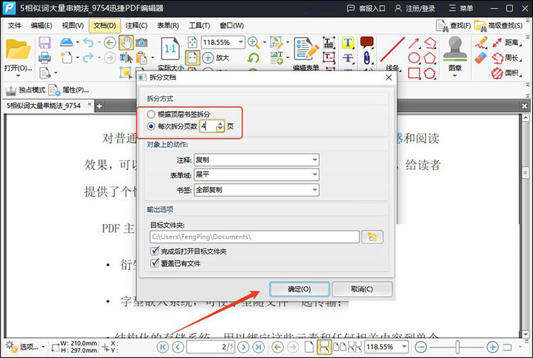 ③根据需求设置拆分页数,软件可随意调整拆分页面,设置完成拆分页面后,点击“确定”。