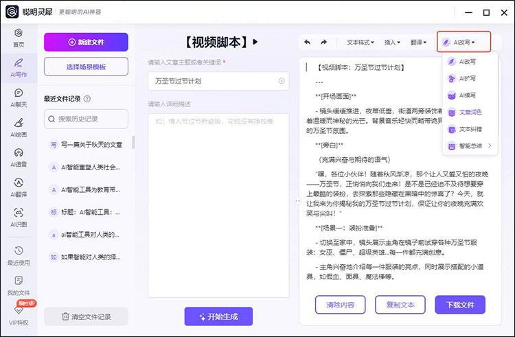 聪明灵犀是一款功能强大的AI写作工具,支持多种语气的内容生成、改写和润色,广泛应用于自媒体文案、工作总结、论文撰写等领域。