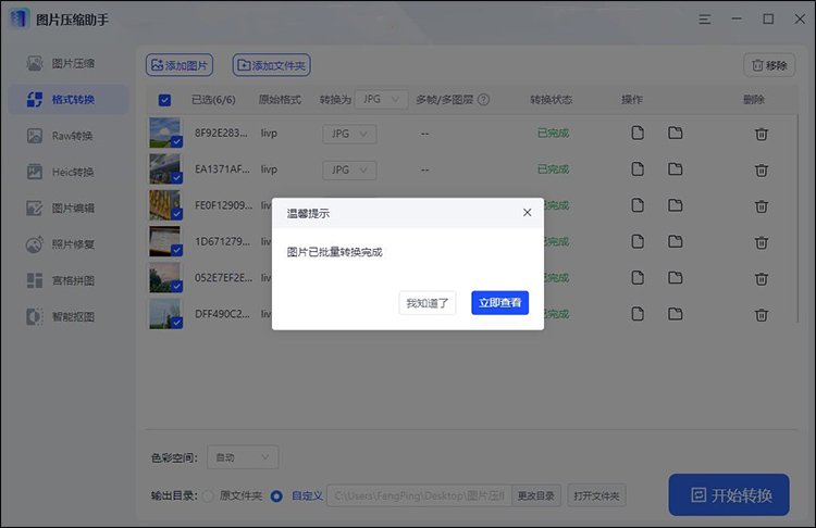 ③设置完成格式后,点击“全部转换”即可在文件夹中查看转换后的jpg图片。