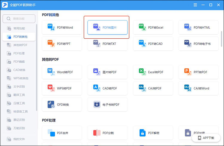 ①打开全能PDF转换助手软件,在左侧功能栏,选择“PDF转其他”功能。