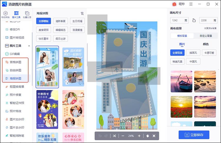 迅捷图片转换器不仅支持各种图片格式转换,还支持图片编辑、拼图、照片修复、抠图换背景、智能证件照等操作,让你能够轻松制作出高质量的图片拼贴。
