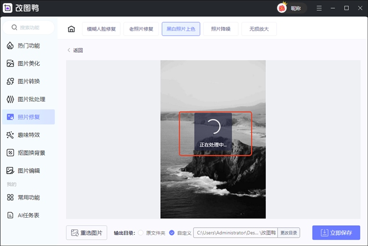 2、导入黑白照片素材之后,系统会自动给照片进行上色;