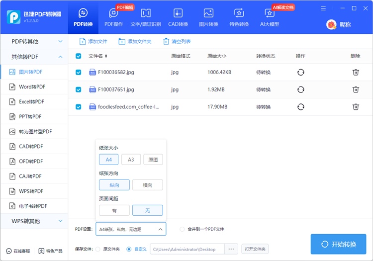 ③批量操作:批量支持将jpg图片转换成pdf。