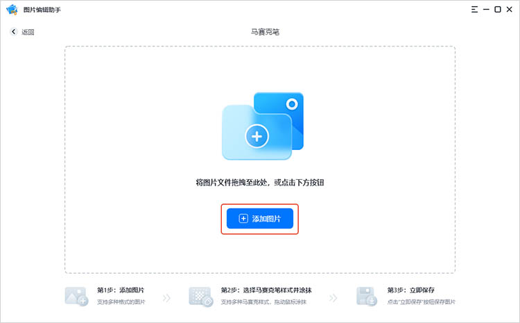 1.打开软件中的【马赛克笔】功能,点击【添加图片】按钮,上传需要加马赛克的图片。